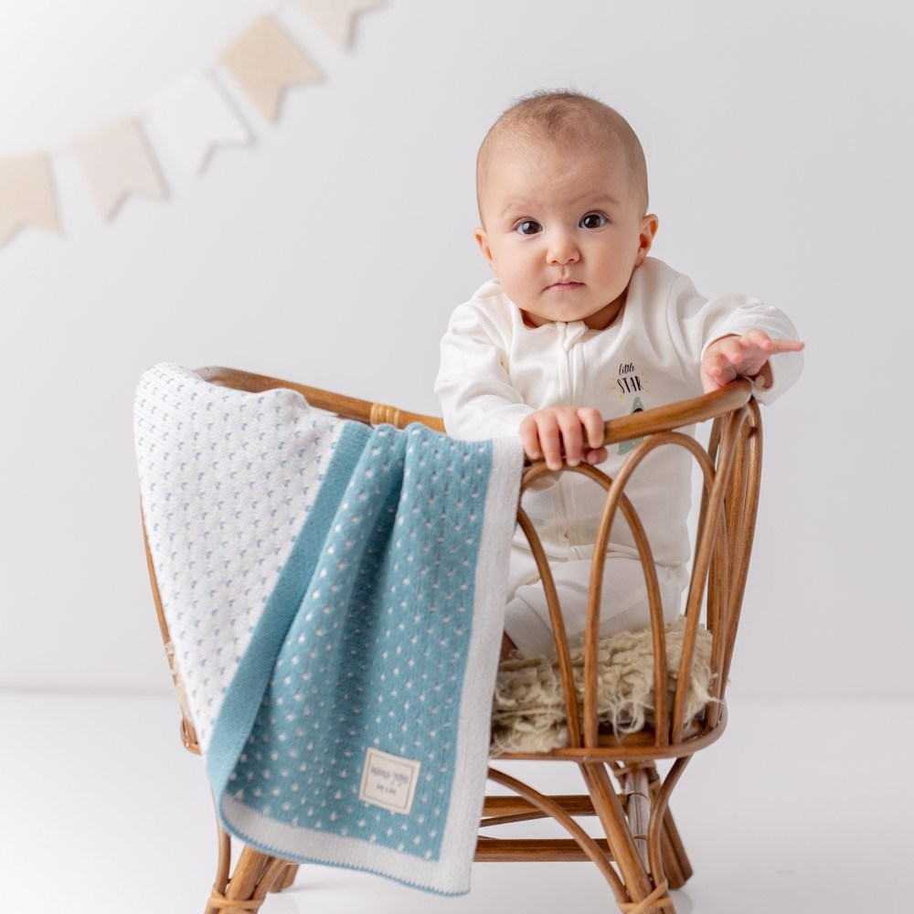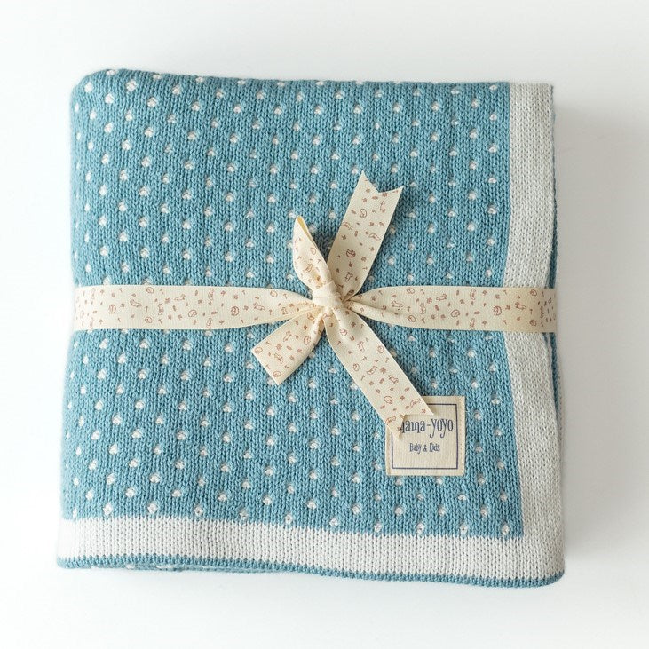 Mama Yoyo Puantiyeli Mavi Çift Taraflı Triko Battaniye 90*90