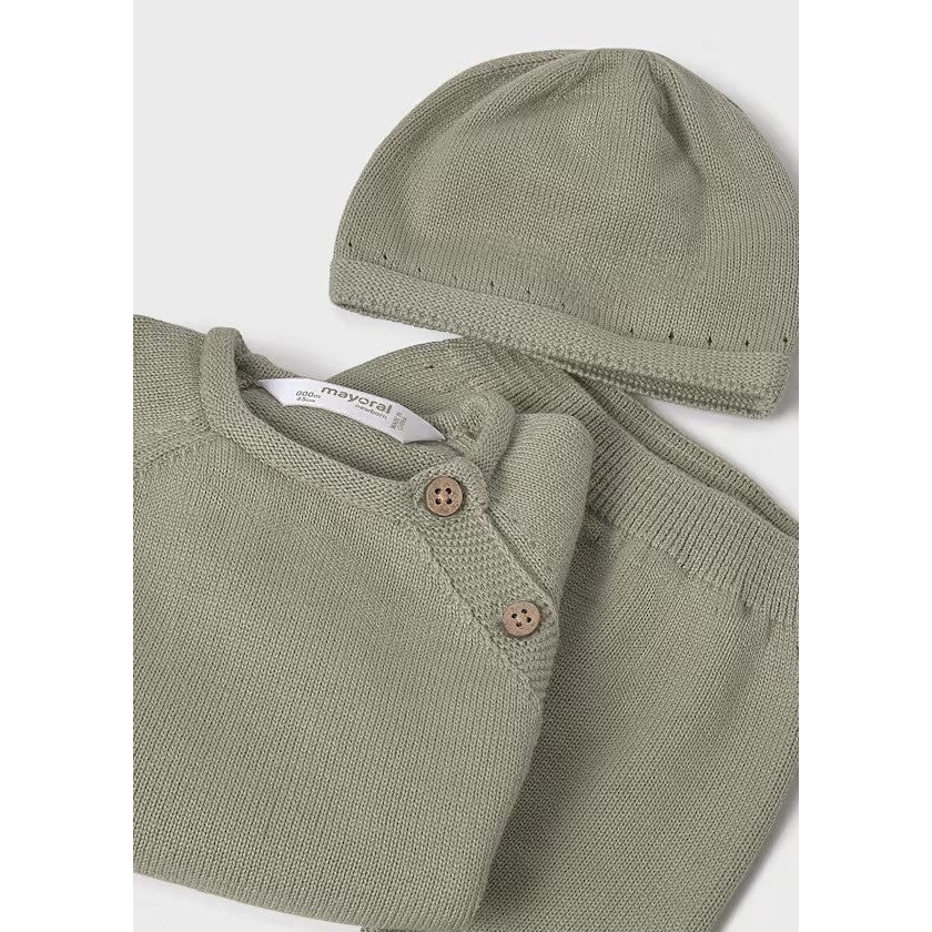 Mayoral Kışlık Bebek Triko Zıbın Bluz Patikli Pantolon Bere Set Yeşil