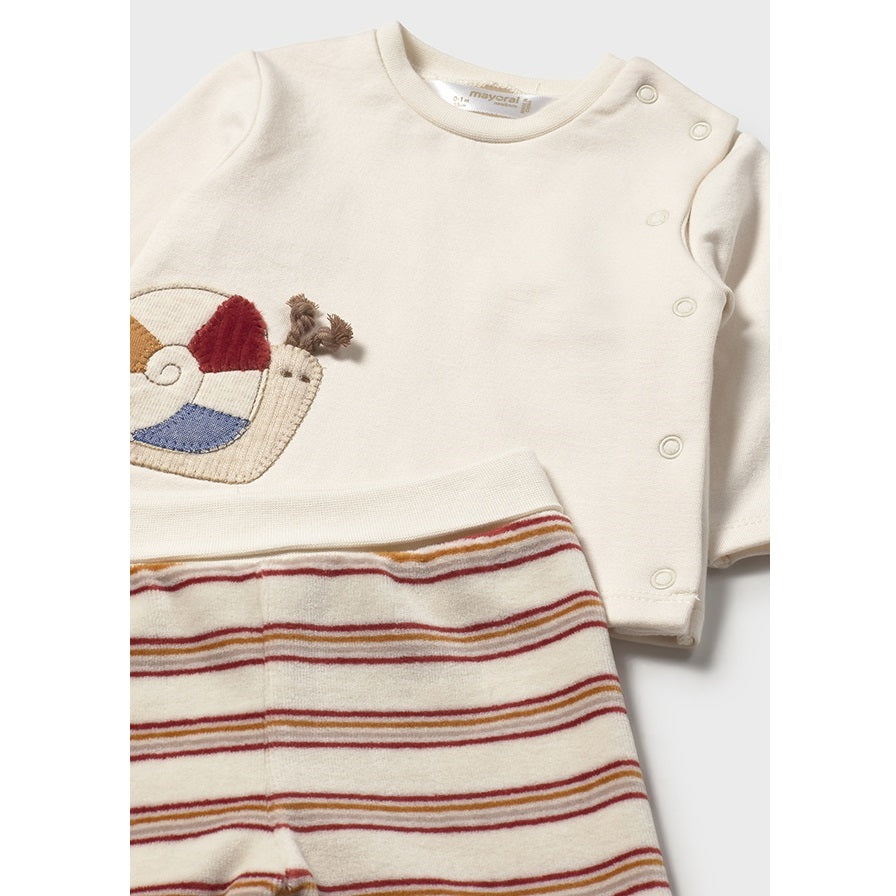Mayoral Kışlık Erkek Bebek Bluz Patikli Pantolon Tulum Set Ekru