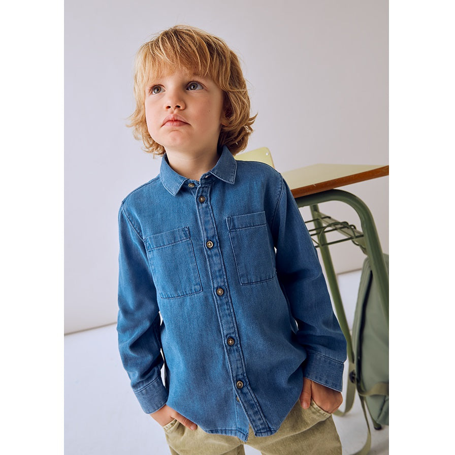 Mayoral Kışlık Erkek Denim Uzun Kol Gömlek, dayanıklı ve yumuşak denim kumaşı sayesinde gün boyu rahatlık sağlar. Basic ve modern tasarımı, pantolon veya eşofman altıyla kolayca kombinlenebilir. Uzun kol yapısı ile kışa uygun ve konforludur.