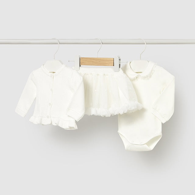 Mayoral Kışlık Kız Bebek Body Ceket Tütü Etek Set Ekru