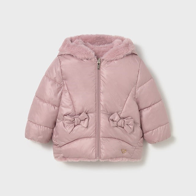 Mayoral Kışlık Kız Bebek Çift Taraflı Kapşonlu Kürklü Mont Pembe