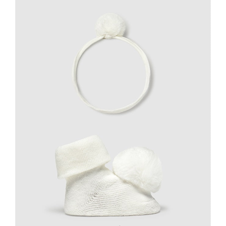Mayoral Kışlık Kız Bebek Çorap Saç Bandı Set Ekru