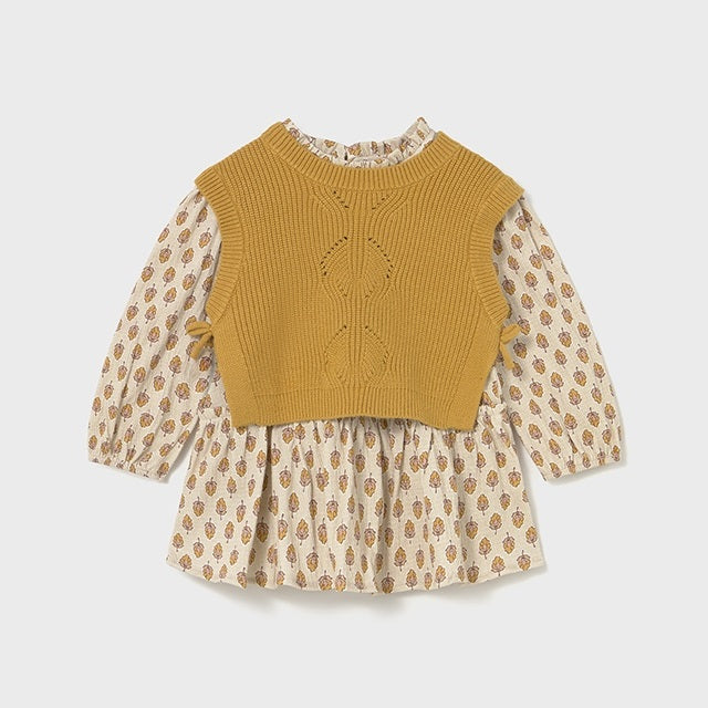 Mayoral Kışlık Kız Bebek Elbise Yelek Set Sarı