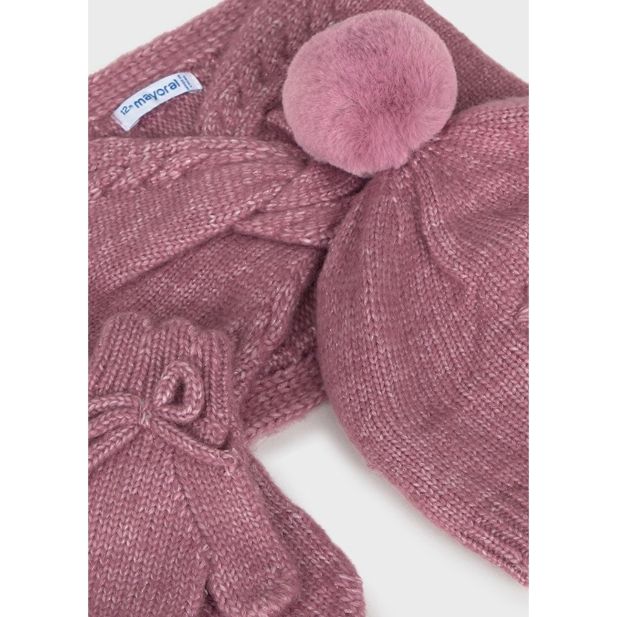 Mayoral Kışlık Kız Bebek Örme Atkı Eldiven Bere Set Koyu Pembe
