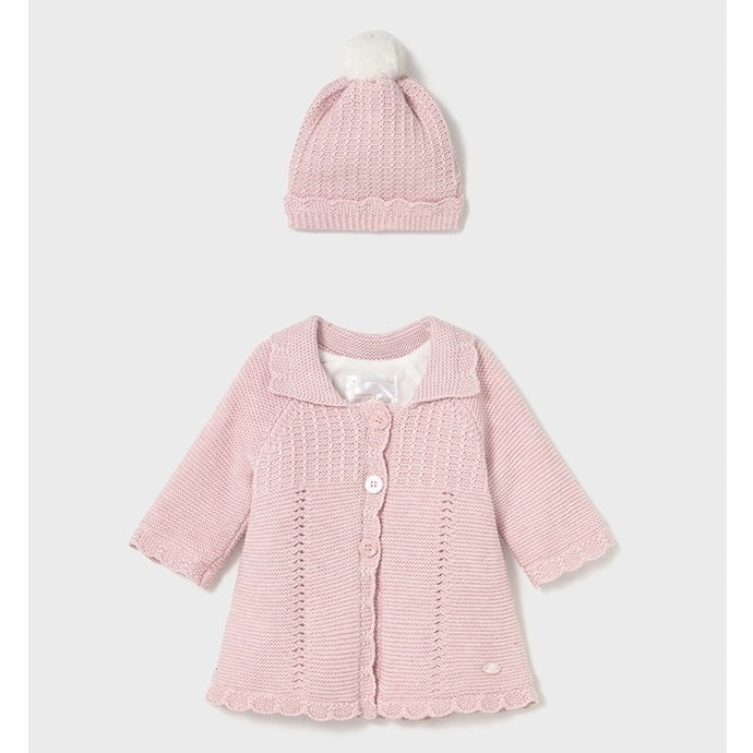 Mayoral Kışlık Kız Bebek Örme Kürklü Uzun Kaban & Şapka Set – Sıcacık ve Zarif