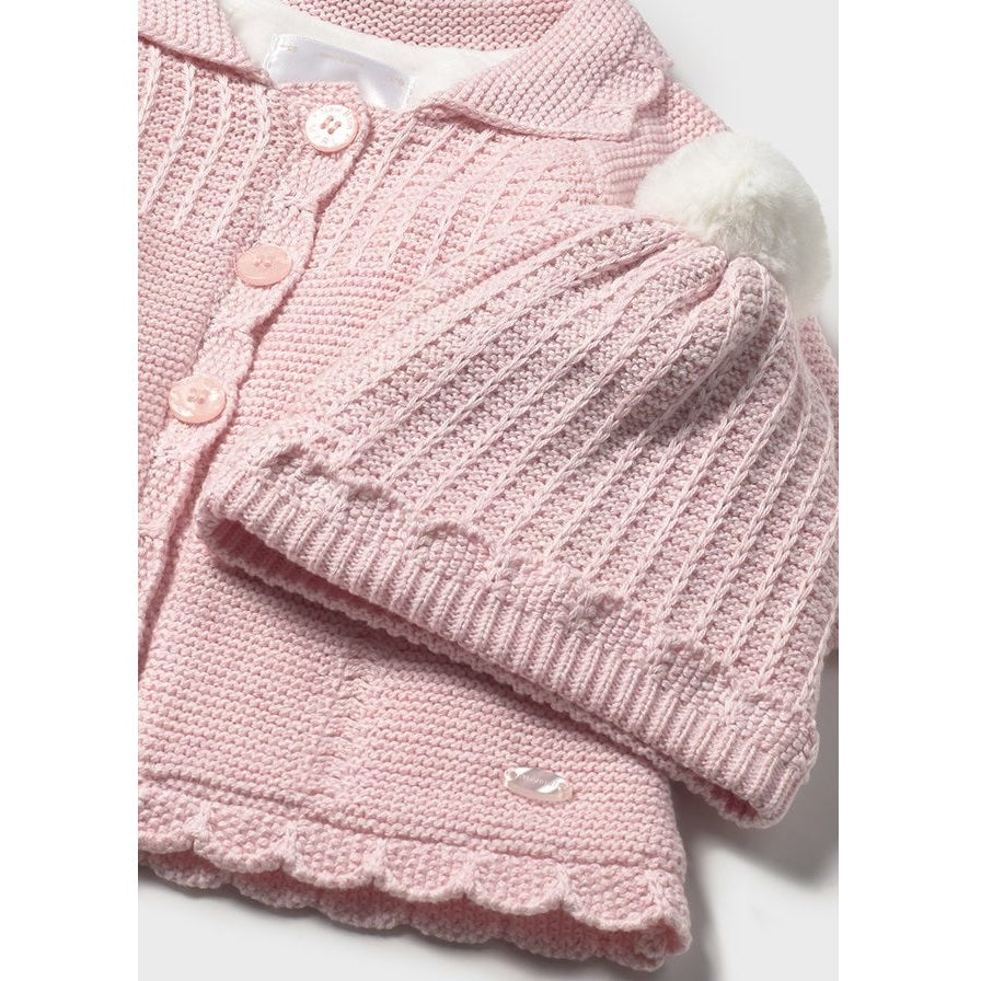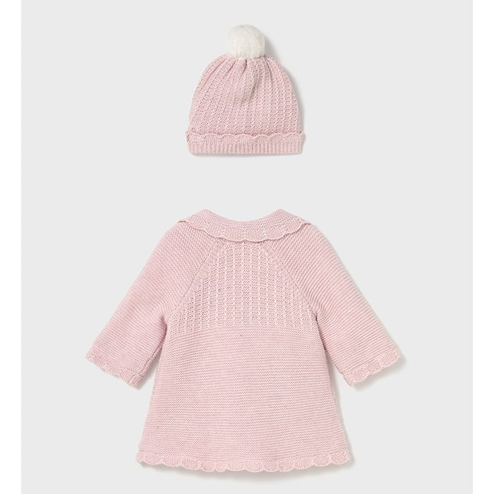 Mayoral Kışlık Kız Bebek Örme Kürklü Uzun Kaban Şapka Set Pembe