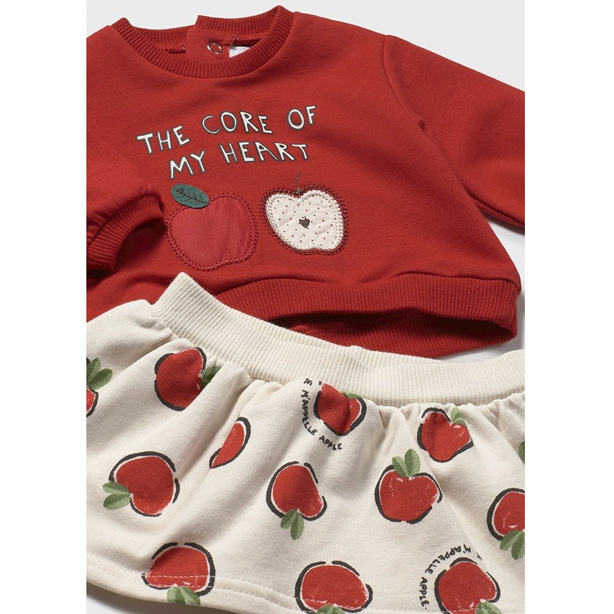 Mayoral Kışlık Kız Bebek Sweatshirt Eşofman Etek Dörtlü Set Kırmızı