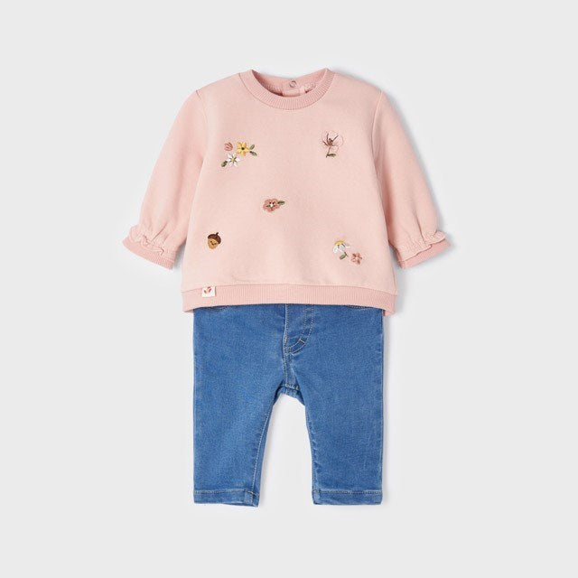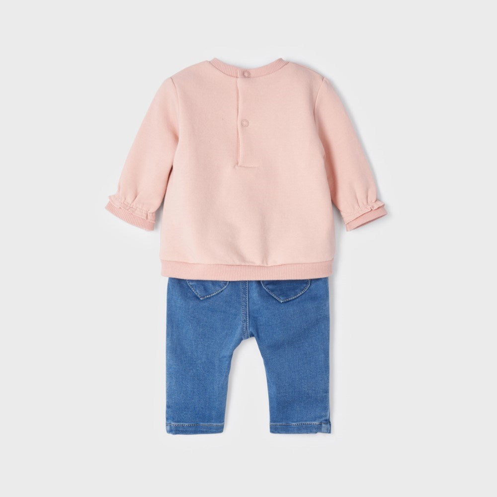 Mayoral Kışlık Kız Bebek Uzun Kol S-shirt ve Denim Pantolon 2'li Set Açık Pembe
