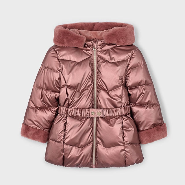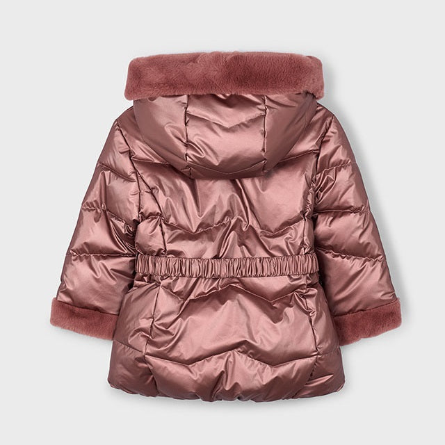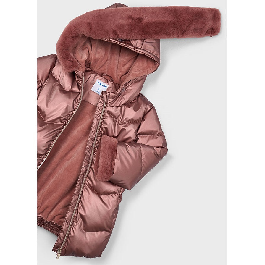Mayoral Kışlık Kız Kapşonlu Kürklü Uzun Mont Pembe