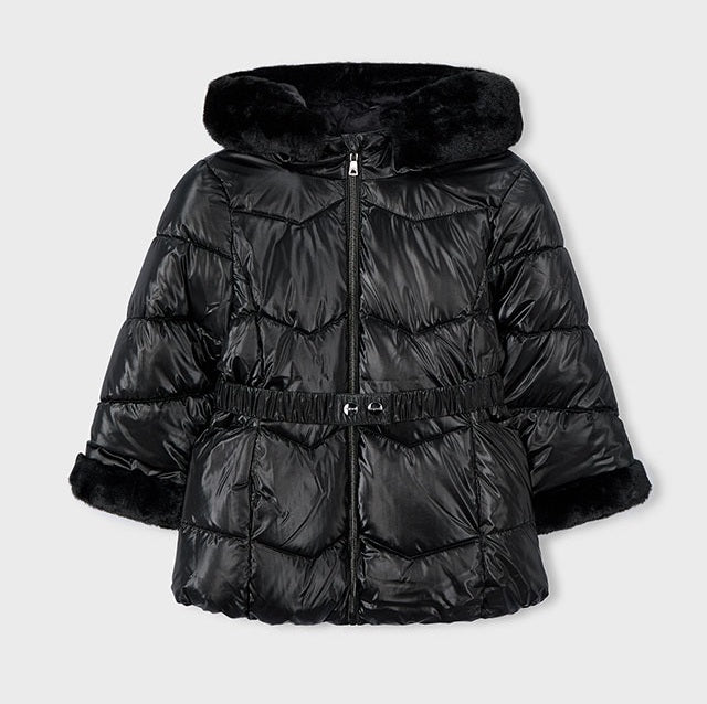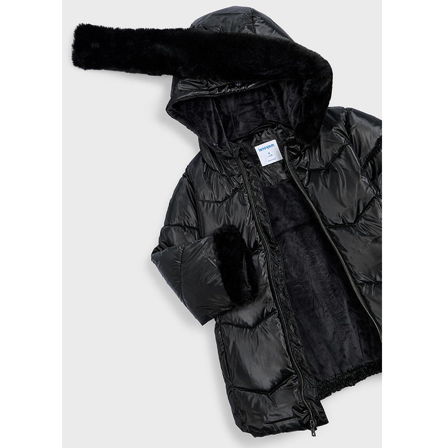Mayoral Kışlık Kız Kapşonlu Kürklü Uzun Mont Siyah