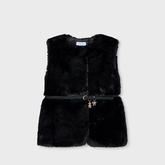 Mayoral Kışlık Kız Kürklü Kemerli Yelek Siyah