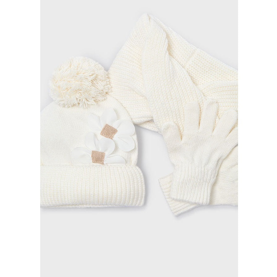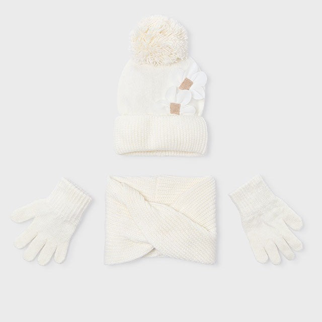 Mayoral Kışlık Kız Örme Atkı Bere Eldiven Üçlü Set Ekru