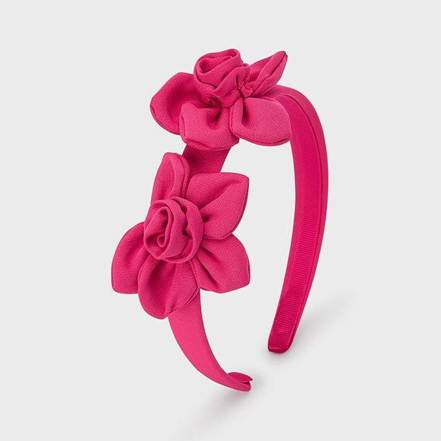 Mayoral kız çiçekli saç bandı, zarif çiçek detaylarıyla çocuk kombinlerine şık ve sevimli bir dokunuş katar.