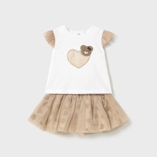Mayoral Yazlık Kız Bebek Bluz Tül Etek Set Ekru