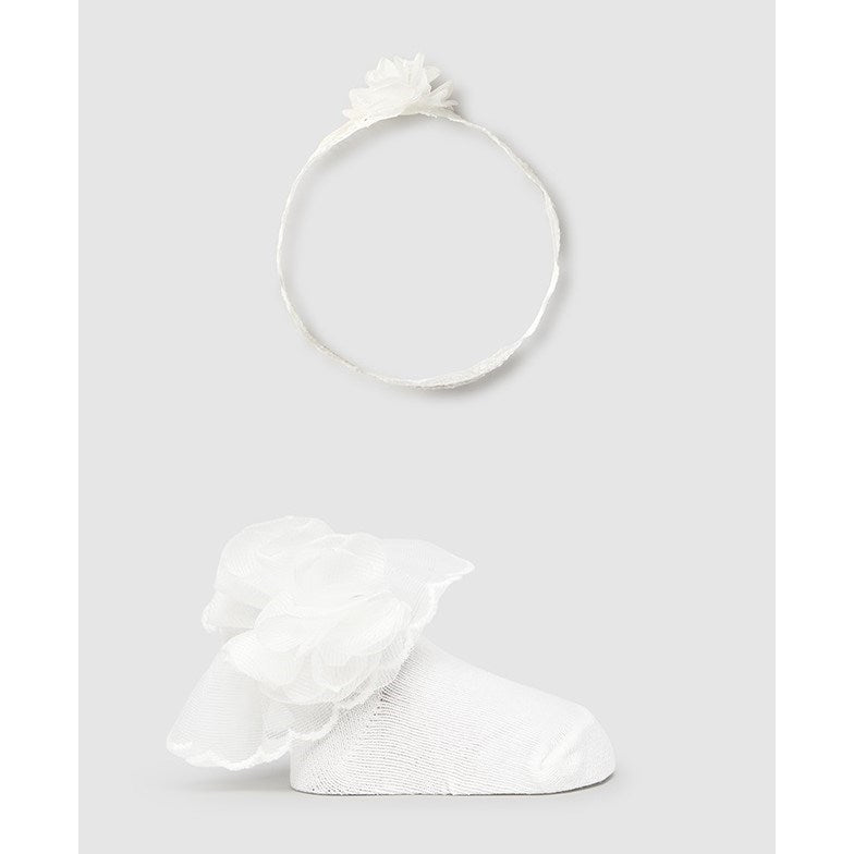 Mayoral Yazlık Kız Bebek Çorap Saç Bandı Set Beyaz