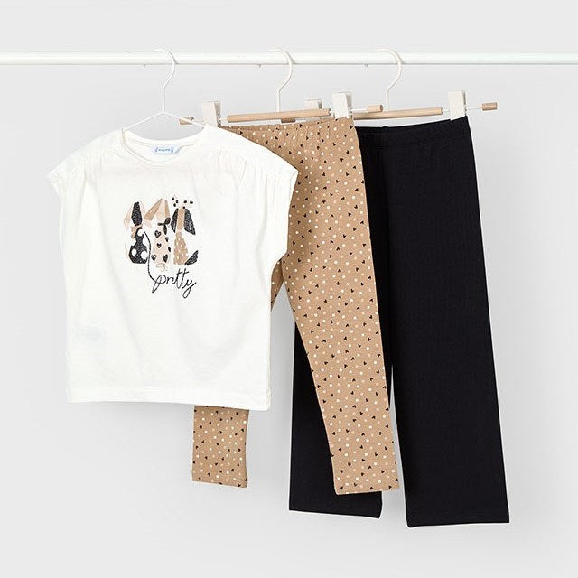 Mayoral Yazlık Kız Bluz Tayt Pantolon 3'lü Set Beyaz
