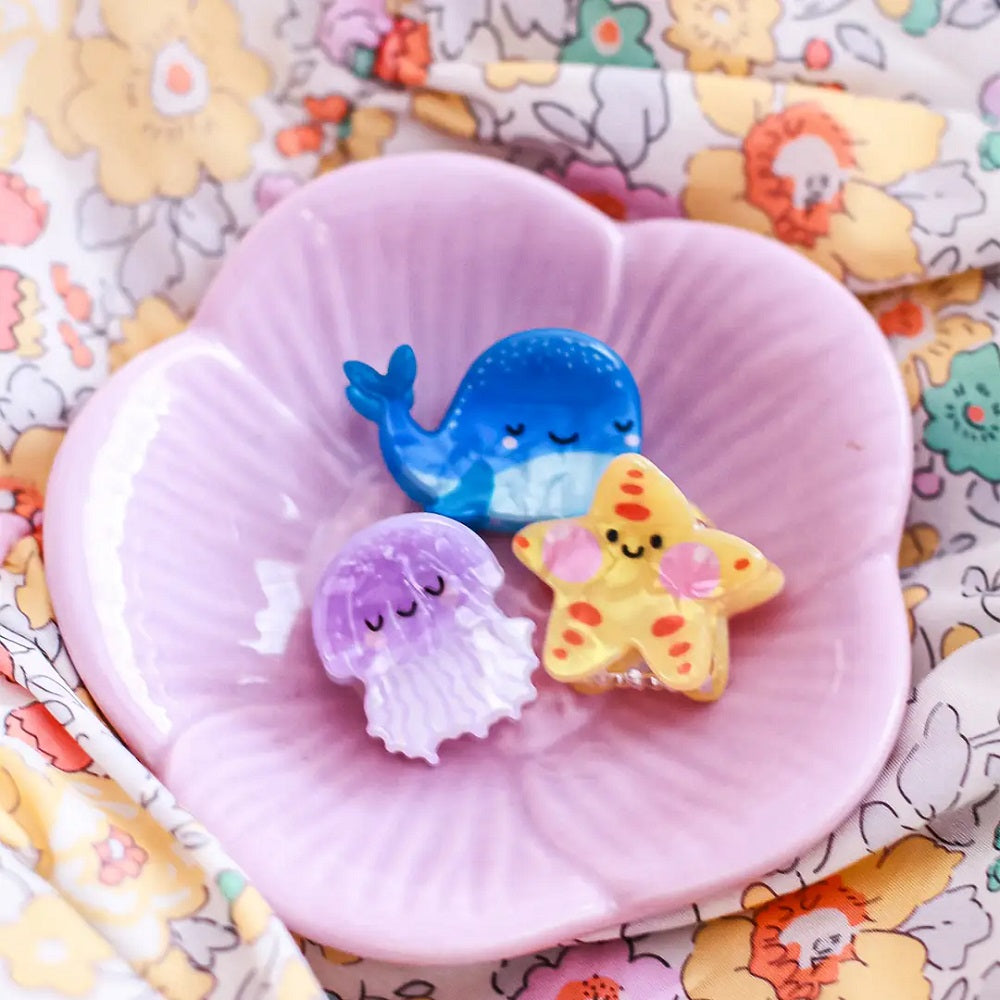 Deniz hayvanları şeklindeki kemik toka, küçük deniz kızları için harika bir aksesuar!