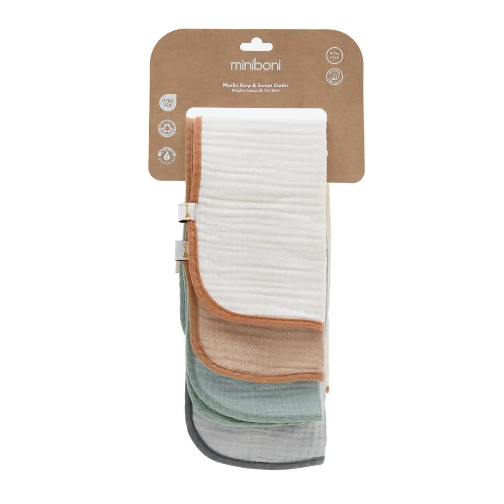 Miniboni 4 katlı Müslin Omuz ve Ter Bezi, annelerin günlük hayatını kolaylaştıran en pratik yardımcılardan biridir. Gaz çıkarma sonrası konfor sağlar, terleme durumlarında bebeğin hassas cildini kuru tutar. Yumuşacık dokusuyla hem anneler hem de bebekler için güvenli ve rahat bir kullanım sunar.