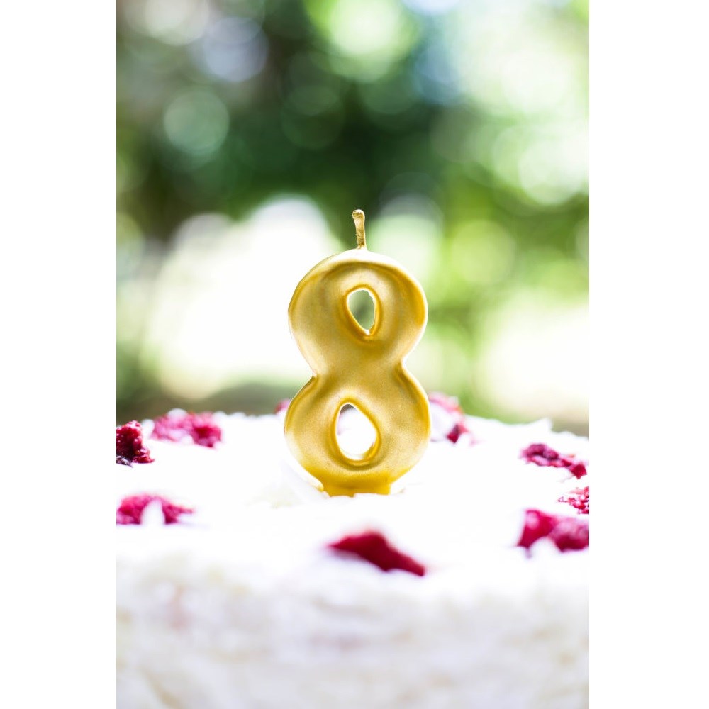 Doğum günü ve partilerde pastalarınızı süsleyecek 8 rakam altın renkli mum.