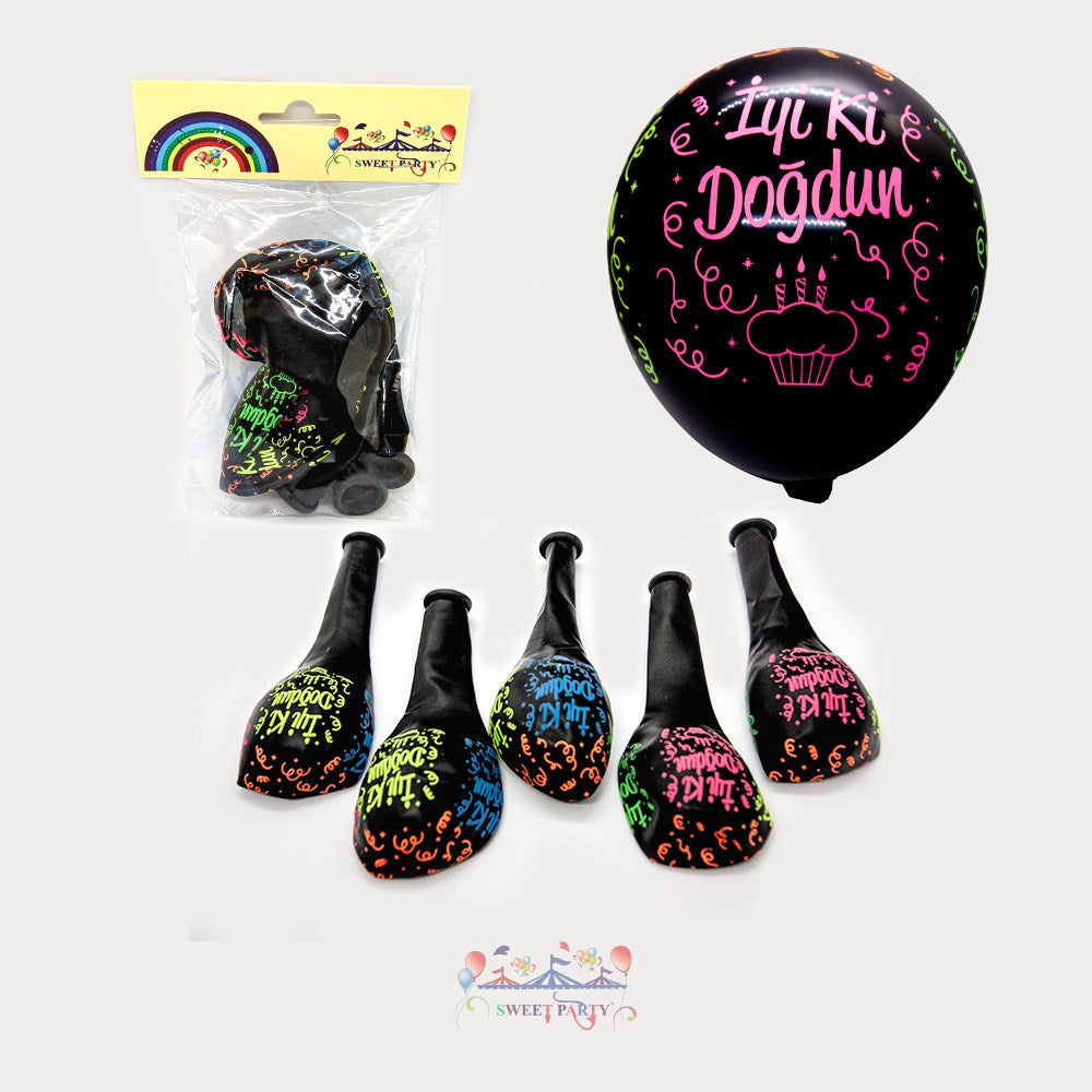 Mumay İyi ki Doğdun Floresan Baskılı Siyah Balon 5'li