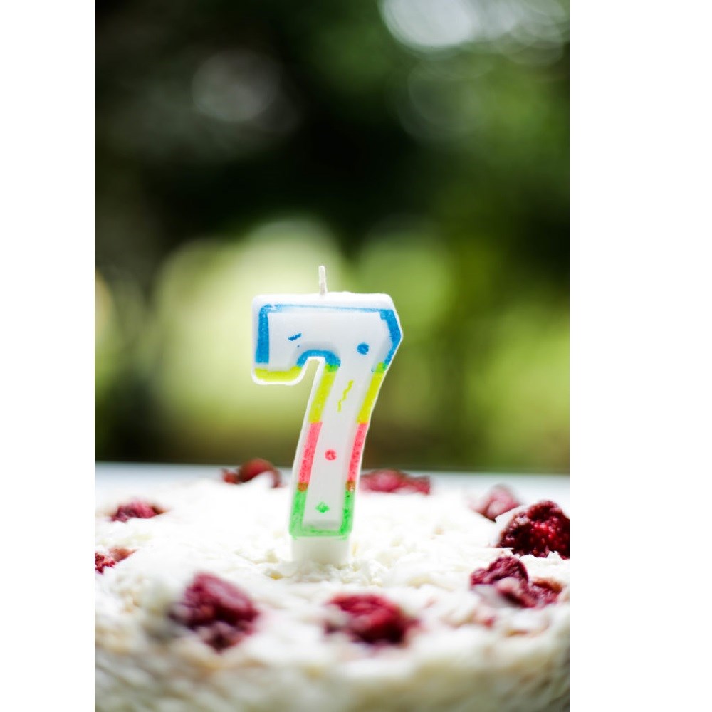 Doğum günü ve partilerde pastalarınızı süsleyecek 7 rakam beyaz kenarları renkli mum.