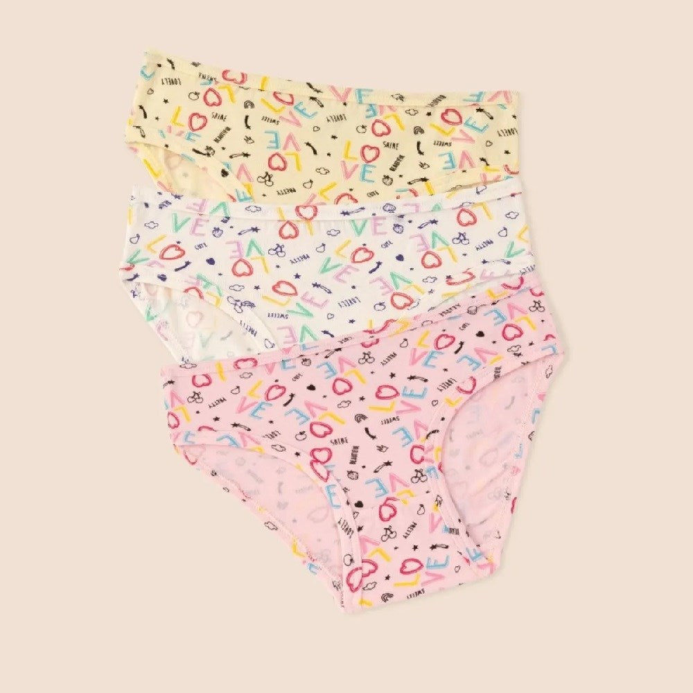Natuline Organik Pamuklu Kız Empirme Love Penye 3'lü Külot Pembe