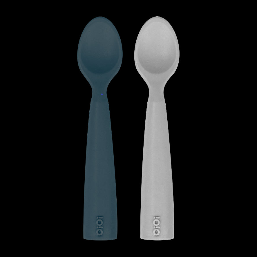 OiOi Silikon Mama Kaşığı Nam Nam 2'li Kaşık Deep Blue / Powder Grey