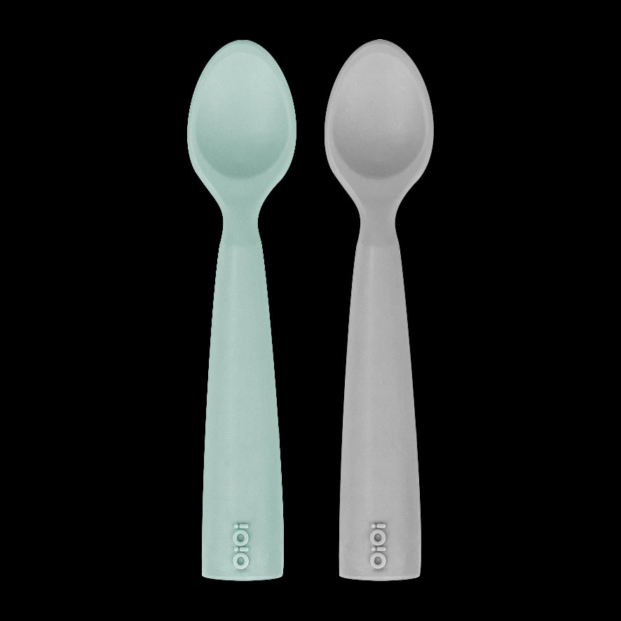 OiOi Silikon Mama Kaşığı Nam Nam 2'li Kaşık River Green / Powder Grey