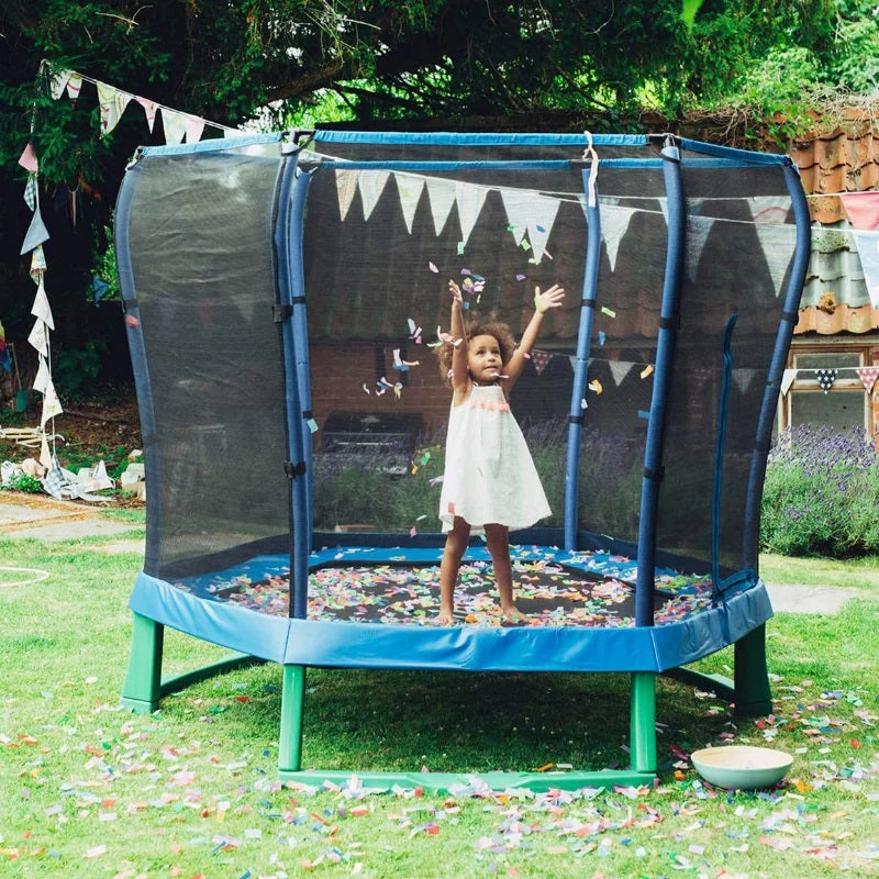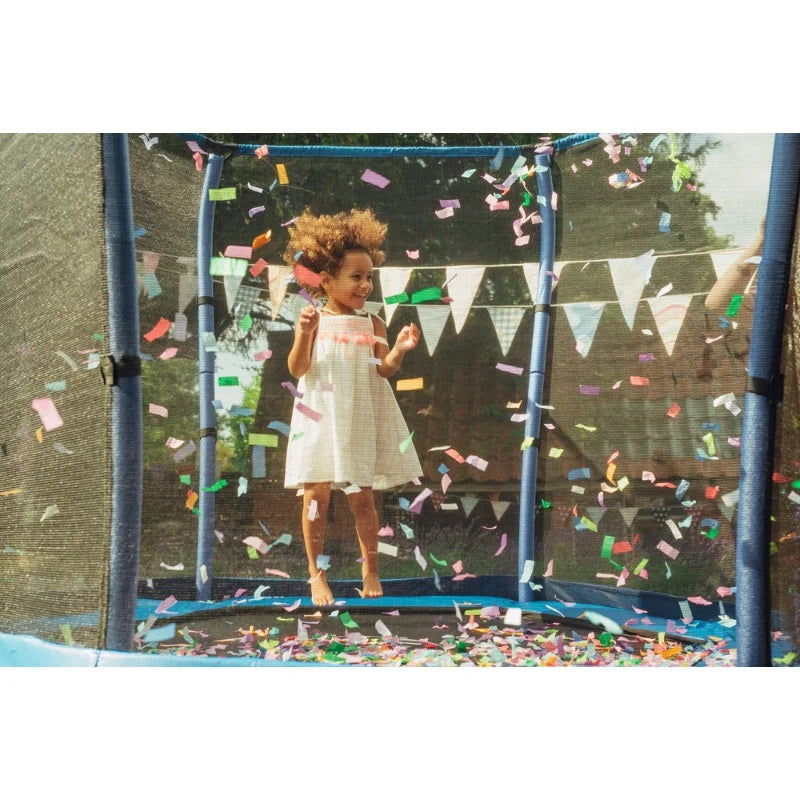 Daha Az Yükseklikte Çerçeve: Yerden sadece 40 cm yukarıda durur ve bu da yeni başlayan zıplayanların trambolinlerine çıkıp inmelerini kolaylaştırır. Daha düşük yükseklikteki çerçeve, miniklerin özgüvenlerinin gökyüzüne doğru zıplayana kadar artmasını teşvik edecektir!