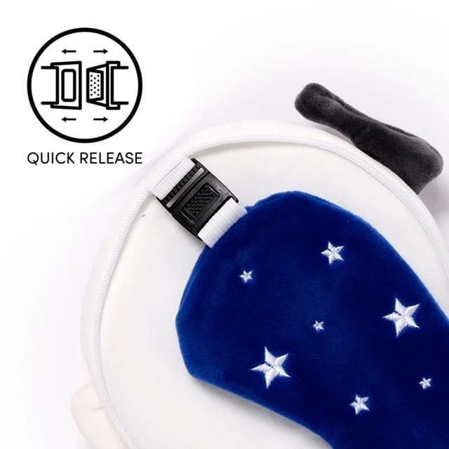 Hem çocuklar hem de yanlardaki esnek lastikleri ile yetişkinlerin de rahatça kullanabileceği bu yastıklar polyester ve spandeksten üretilen göz maskesi, kolay kullanım için hızlı açma mekanizmasına sahiptir ve kemere veya çantaya takabileceğiniz kullanışlı bir plastik klipsle birlikte gelir, böylece asla kaybolmaz!