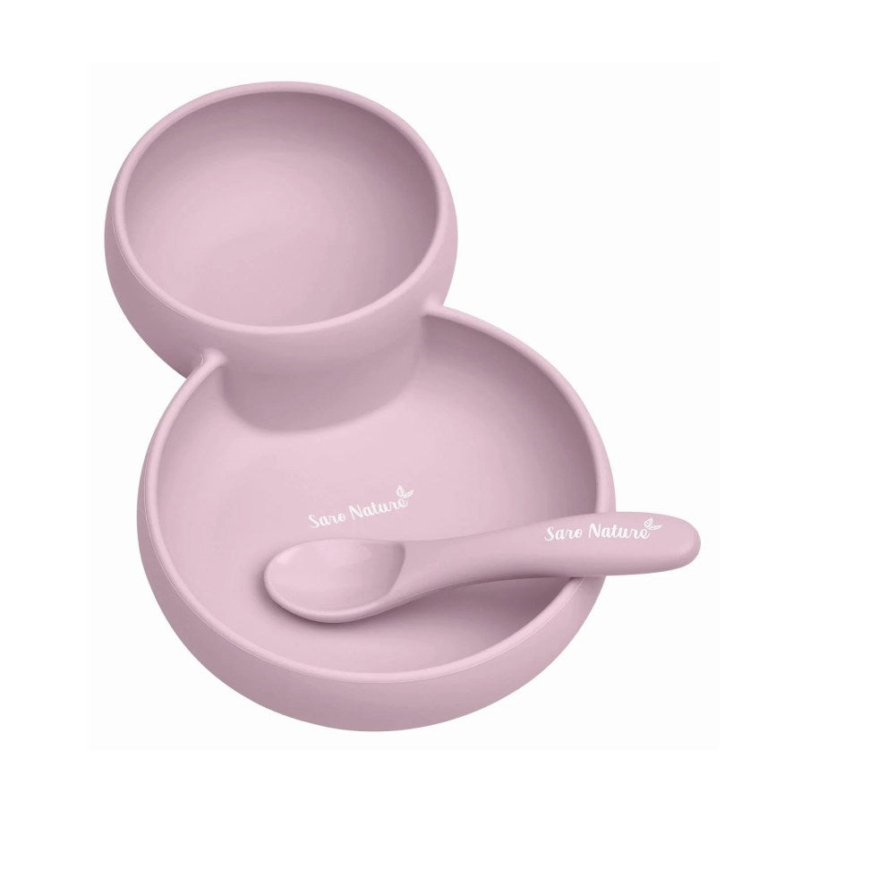 Saro Silikon İkiz Tabak Kase ve Kaşık Seti- Pembe