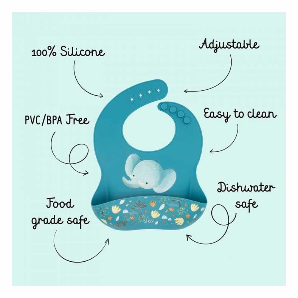 Sassi Silikon Cepli Mama Önlüğü - Bilge Fil