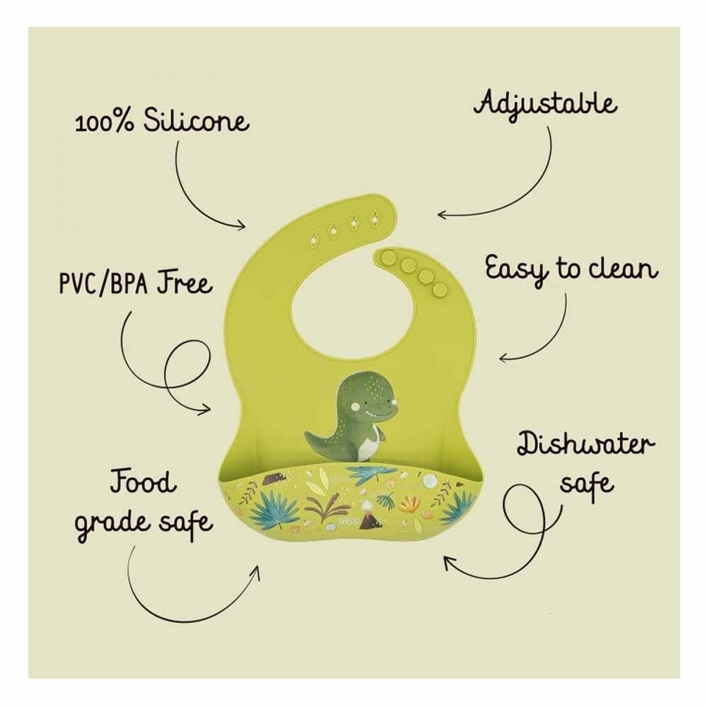 Sassi Silikon Cepli Mama Önlüğü - Güçlü Dinozor