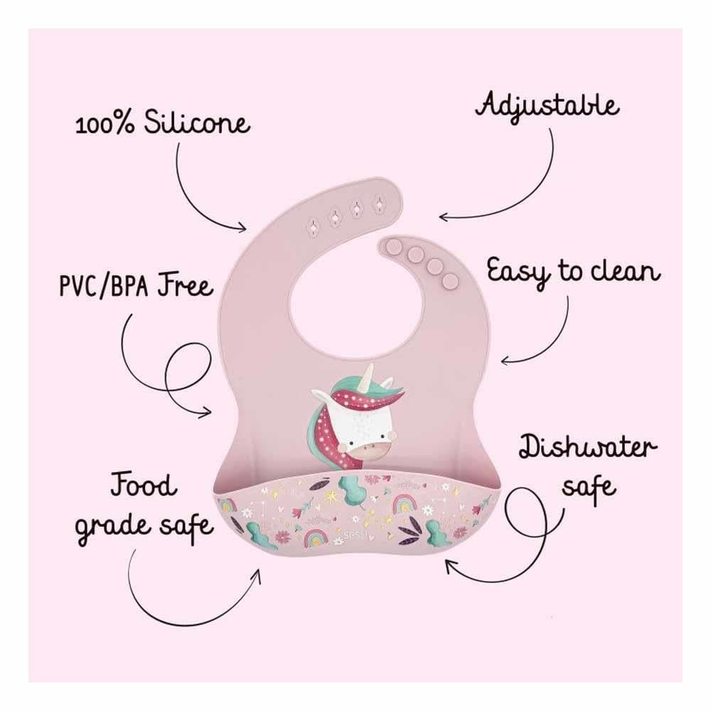 Sassi Silikon Cepli Mama Önlüğü - Sevimli Unicorn