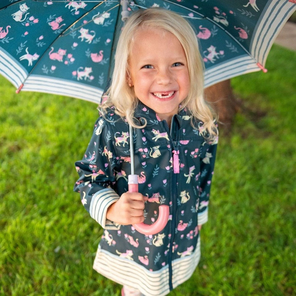 Stephen Joseph Kız Çocuk Kedi Desenli Yağmurluk Lacivert