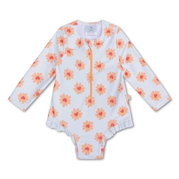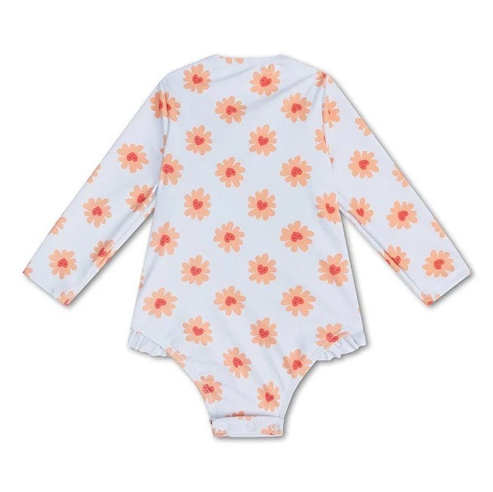 Swim Essentials Fermuarlı Uzun Kollu Mayo- Flower Ekru