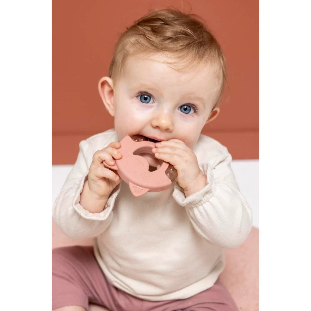 Diş çıkarma döneminde serinletici ve rahatlatıcı olan bu su dolu silikon oyuncak, küçük ellerin kavraması için yumuşak ve kolaydır. Farklı dokuları hissedebilir ve çiğneyebilir, ayrıca dört sevimli hayvan yüzünden birini seçebilirler. Buzdolabında güvenle kullanılabilecek malzemelerden üretilmiştir.