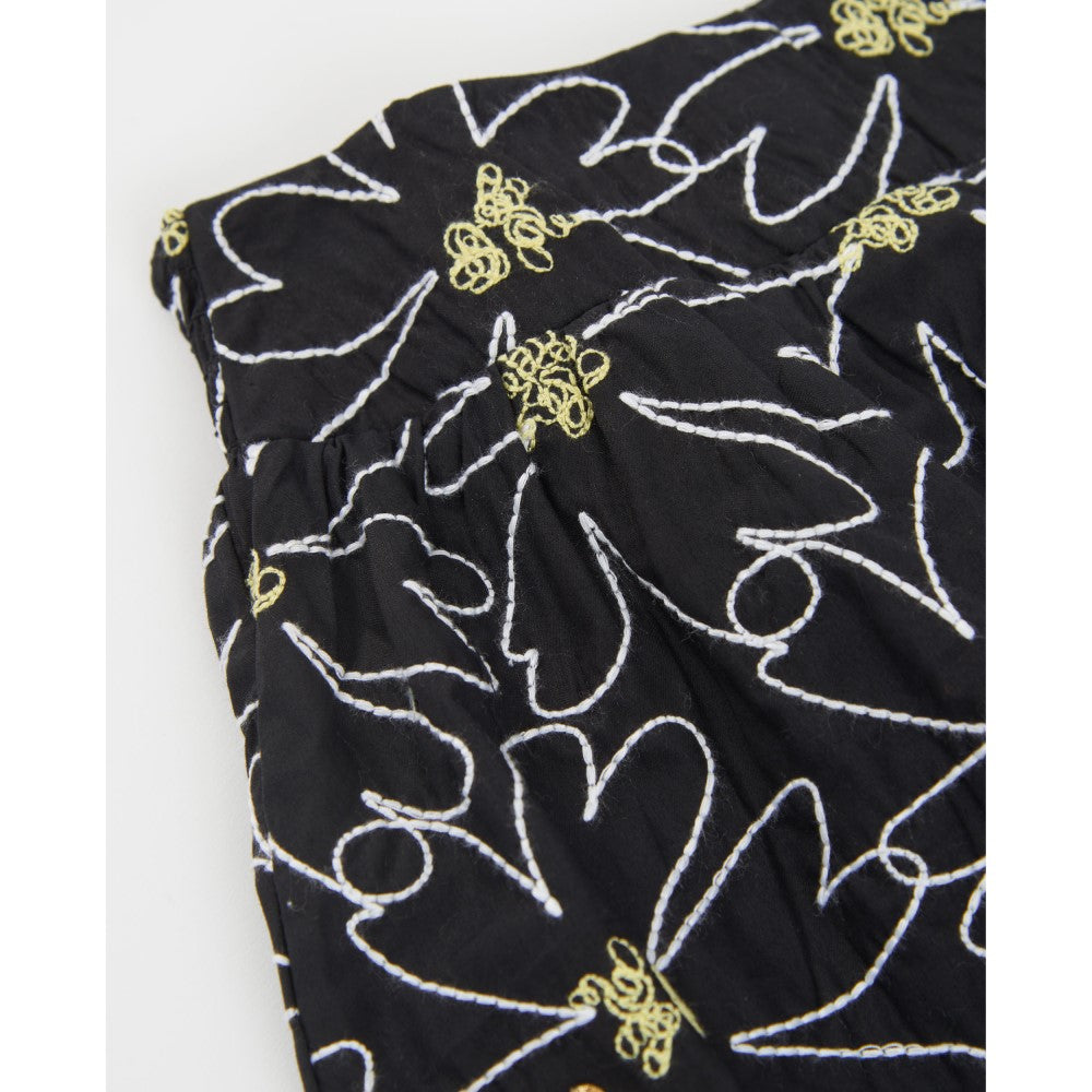 Tasarım, beyaz konturlar ve sarı detayları birleştiren, dikkat çekici bir dekoratif dokunuş katan kontrast çiçek işlemeleriyle süslenmiştir. Neşeli yaz kombinleri için mükemmel, çok yönlü ve havadar bir parça.