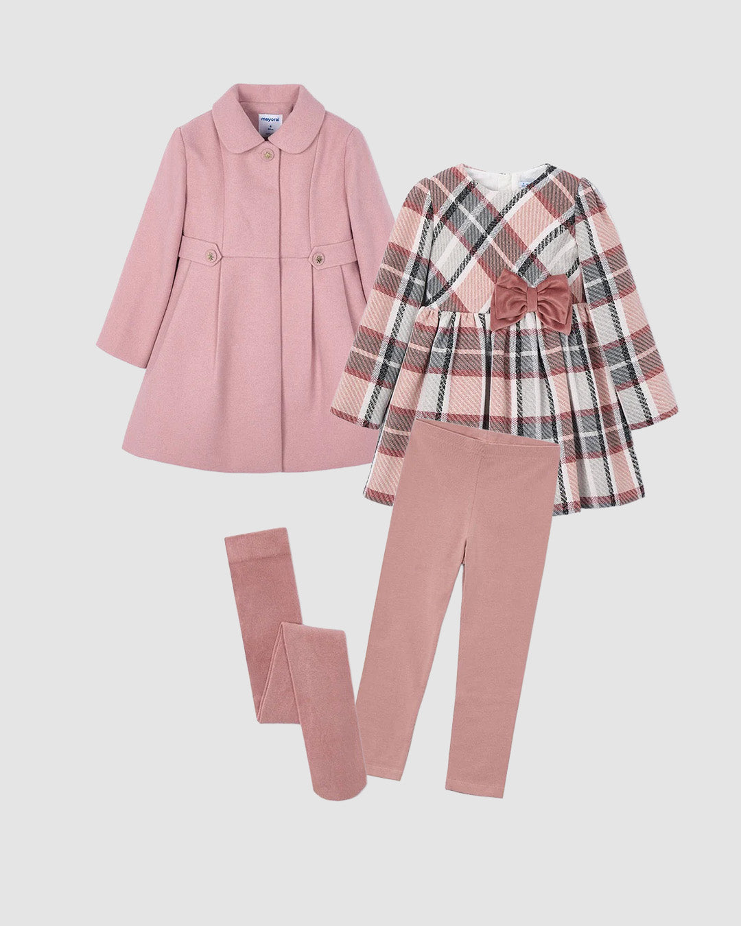 Mayoral Kışlık Kız Kapşonlu Ceket T-shirt Eşofman Üçlü Set Pembe