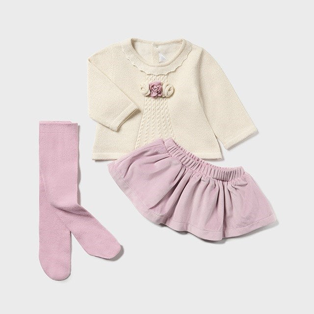 Mayoral Kışlık Kız Bebek Kazak Etek Çorap 3'lü set Pembe