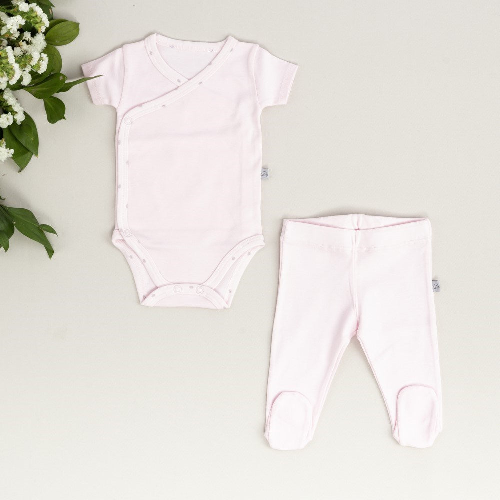 Mayys Baby Bebek Organik Kısa Kollu Zarf Zıbın ve Patikli Alt 2'li Set Pembe